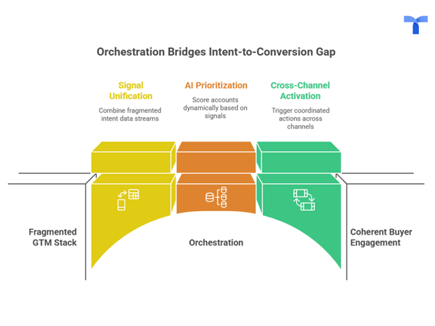 AI GTM orchestration is the coordination layer that sits between your signals and your execution. It's not another intent tool. It's not a sequence builder. It's the infrastructure that makes the rest of your stack act as one system.